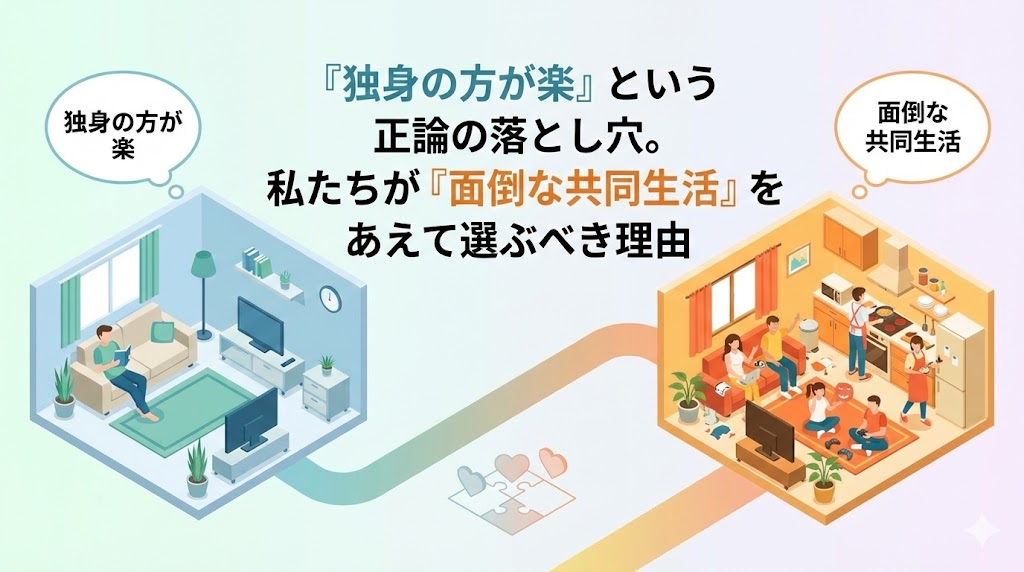 しかし、多くの人がこの「正論」の先にある落とし穴に気づいていません。なぜ、ビジネスにおいて合理的であるはずの私たちが、あえて「面倒な共同生活」を選ぶべきなのか。その理由を、ビジネスと幸福の観点から紐解きます。